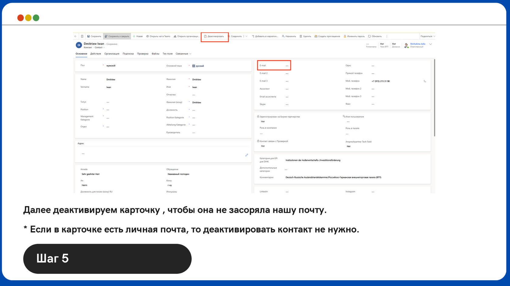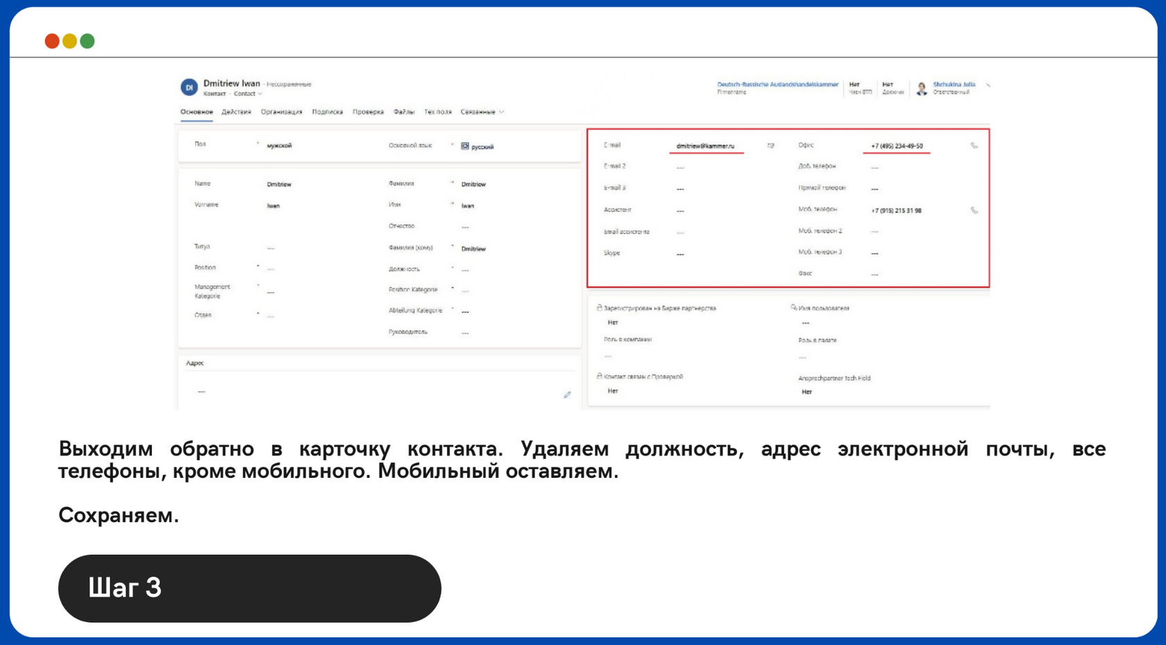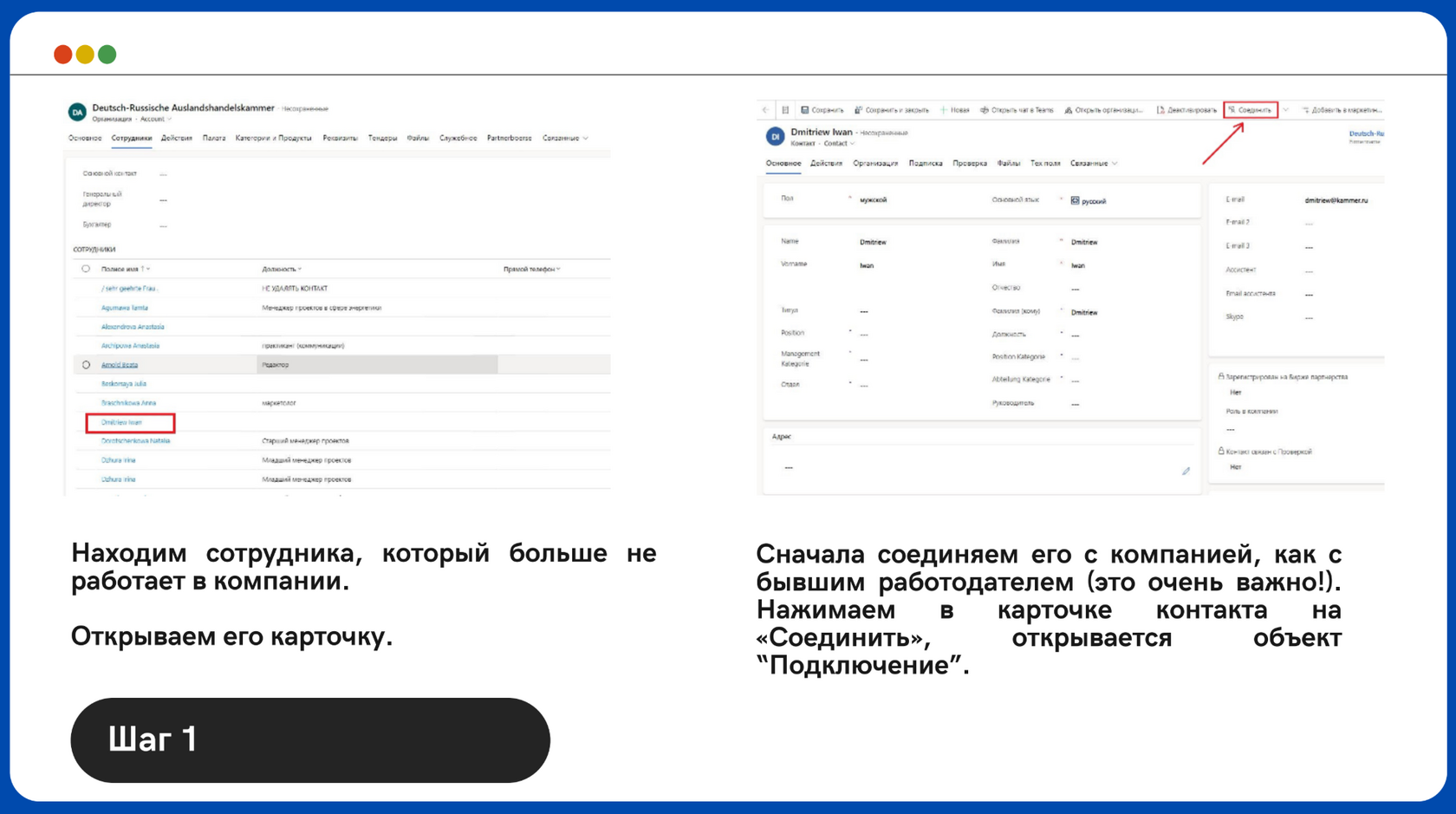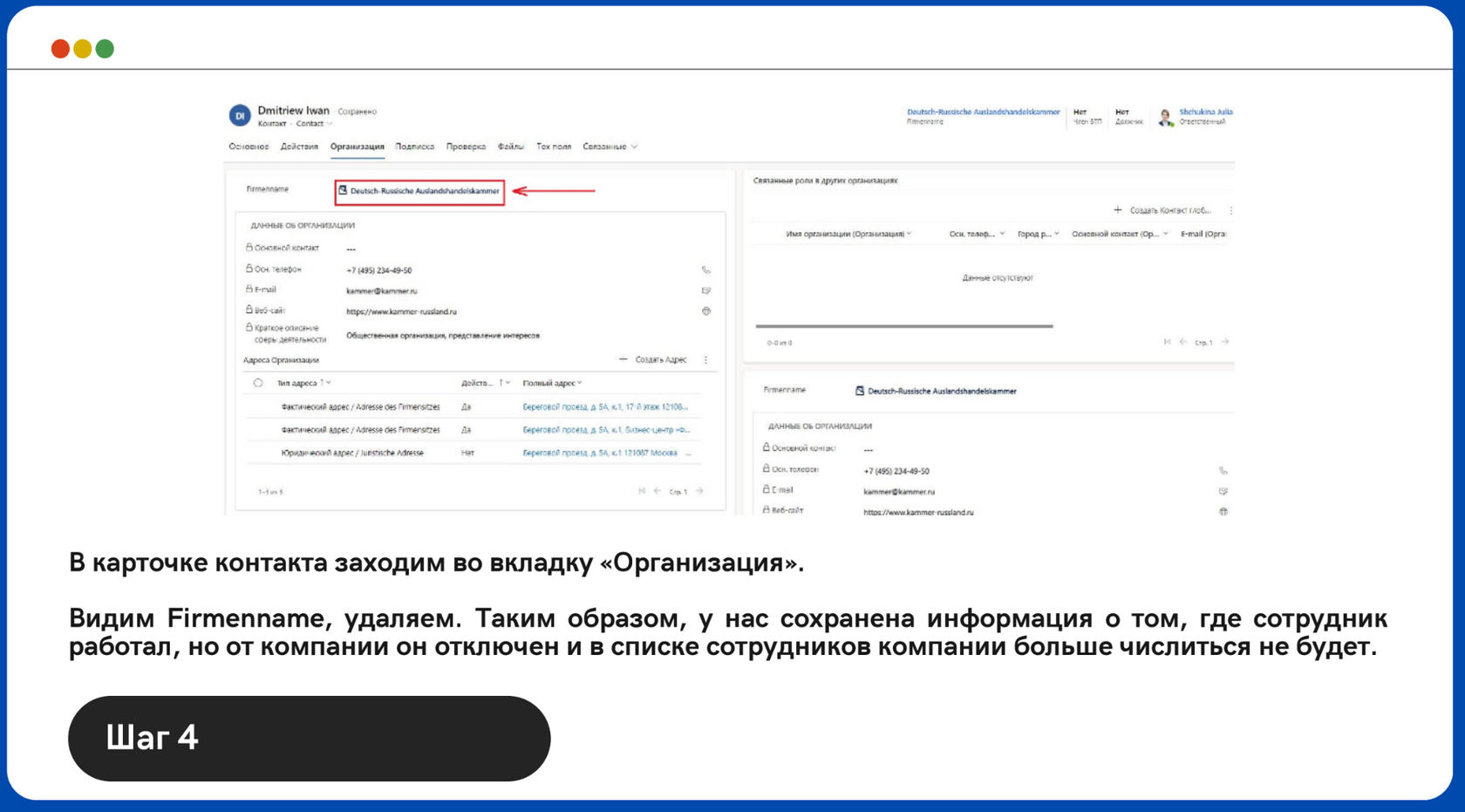 Урок 1: Контакт сменил место работы